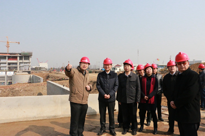 上午10時許,李亞平一行首先來到新溝河江邊樞紐工程,看到已建成的船閘上下閘首和泵站廠房主體結構高高聳立,在藍天白云映襯下格外雄偉壯觀,工地上一派熱火朝天的繁忙景象,200多名工人正在緊張施工作業。站在樞紐交通橋上,李亞平仔細詢問了工程建設進度和春節后復工情況,了解協調工程建設征遷遺留問題。他要求參建單位要抓好質量安全管理,確保按期實現汛前具備水下驗收條件的目標。
