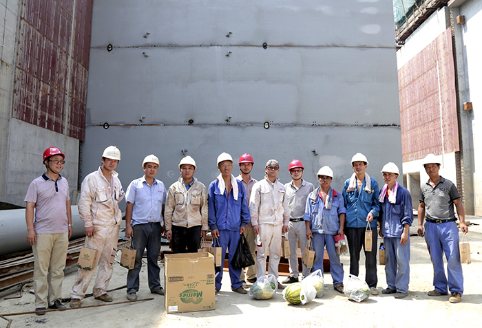 7月25日,水機公司黨委書記田建京、工會主席黃統及相關項目負責人前往芒稻閘、邵仙閘項目施工現場開展 “送清涼”活動,慰問戰斗在高溫酷暑下的一線員工。他們送去防暑降溫用品、西瓜和慰問金,囑托現場員工注意施工安全,合理調整作息時間,采取必要的防暑降溫措施,團結一心,攻堅克難,確保優質高效地完成項目施工任務。