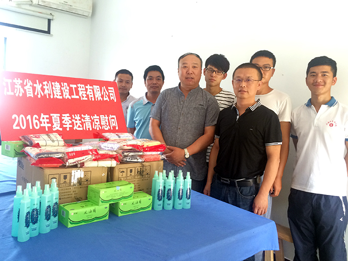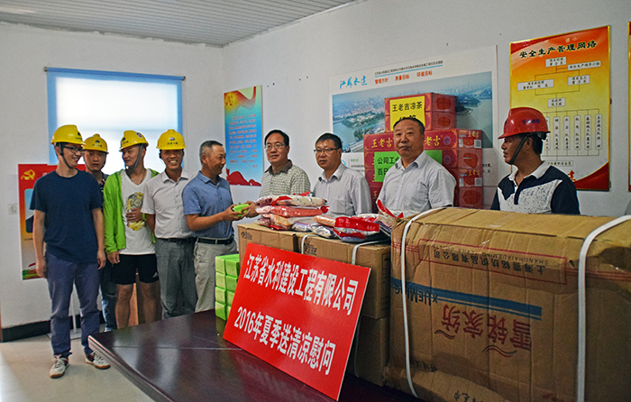 盛夏酷暑,高溫逼人。7月28日起,公司董事長、黨委書記夏國春、黨委副書記、工會主席姜啟生帶隊開展“清涼一夏、幸福安康”高溫慰問活動。慰問組利用一周時間,來到公司在建的16個項目部,看望并慰問了高溫天氣下堅守崗位的1300多名一線員工,為他們“送清涼、送安全、送知識”。公司副總經理許國安、翟高明、楊斌分片參加慰問活動。