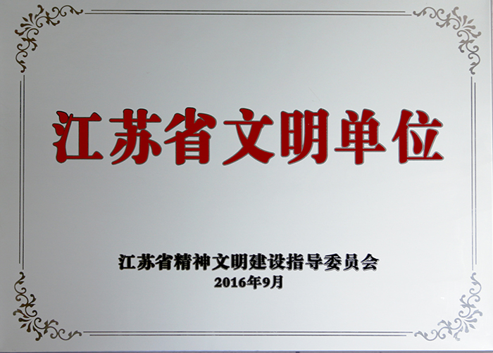 近日,江蘇省精神文明建設指導委員會評選表彰了2013-2015年度江蘇省文明行業和江蘇省文明村鎮、文明單位(社區、校園),我公司再次被評為“江蘇省文明單位”。
