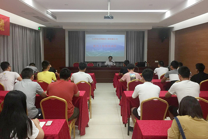 在開班講話中,公司監事會主席、紀委書記黃祥圣向新員工介紹了公司的發展史、組織結構、公司資質以及榮譽,分了享艱苦創業、樂于奉獻、團結拼搏、爭創一流的公司創業精神。并對新員工提出了三點建議:一是態度決定一切;二是細節決定成敗;三是要養成良好的做事和學習習慣,他同時鼓勵新員工早日融入江蘇水建這個大家庭,與公司共奮斗、共成長。
