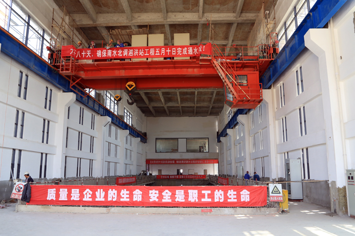 在我公司泗洪站工地上,鄂竟平聽取了鄧東升對工程建設情況的匯報,認真查看了泗洪泵站的貫流泵機組,對工程的施工質量表示贊許。我公司總經理夏國春、泗洪二標項目經理劉存明陪同參加了現場活動。