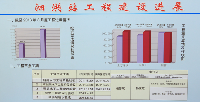 在查看工程現場之后,召開了座談會。會上,鄂竟平高興地說,今天利用一天的時間,查看了金寶航道等重點工程施工現場,雖然時間很短,但是印象很深。一是江蘇南水北調工作講大局。在建設過程中,全體參建人員緊緊圍繞通水時間節點,堅持不懈,嚴格管理,克難攻堅,不斷掀起建設高潮,工程建設取得了明顯成效。二是江蘇南水北調工作抓的既細又實。無論是進度還是質量,都能超前考慮、提前部署,做到計劃詳實、措施扎實,為工程按期實現通水目標奠定了基礎。對于下一步工作,鄂竟平強調要做好三方面工作:一是要咬定目標不動搖。南水北調東線工程建設了10年,很快就要見成效。全體參建人員要堅定信心,咬定通水目標不動搖,確保三季度前后實現全線正式通水。二是要發揚連續作戰精神。要圍繞通水節點計劃,繼續抓緊抓好工程建設掃尾工作,確保完成工程建設任務。三是要高度重視運行管理工作。南水北調東線工程運行管理工作十分復雜,工程全線通水在即,沿線各級政府和相關單位要高度重視、互相理解、互相支持,確保全線通水圓滿成功。