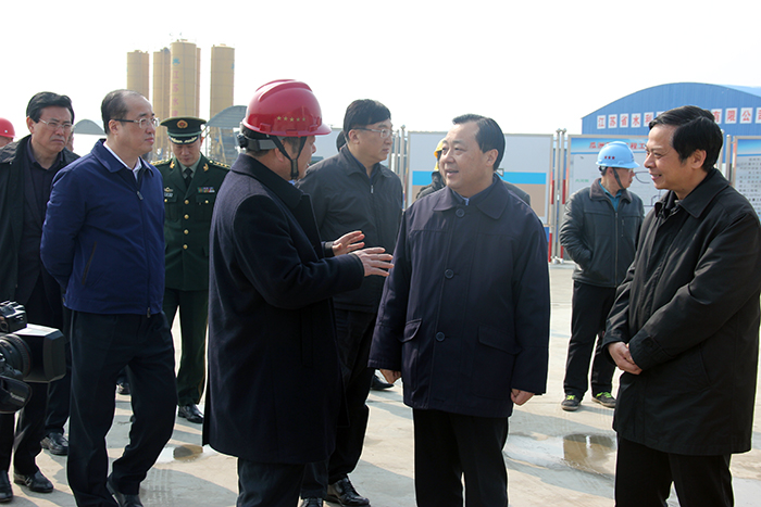 322,揚州市委書記謝正義到我公司承建的揚州市瓜洲泵站檢查指導工作,副市長丁一、何金發以及市安監局局長熊佳芝、水利局局長康盛君、副局長凌國棟等有關部門負責同志參加檢查。我公司黨委書記、董事長時愛祥、副總經理翟高明參加活動。