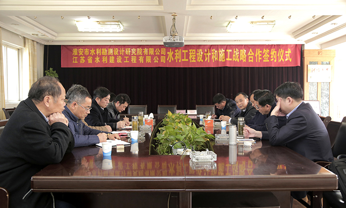3月23日,公司、水機公司分別與淮安市水利勘測設計研究院有限公司簽署戰略合作協議,淮水院總經理吳昌新、省工勘院有限公司董事長宋意勤、公司董事長時愛祥、水機公司總經理鐘衛華等10多位領導、專家出席簽約儀式。