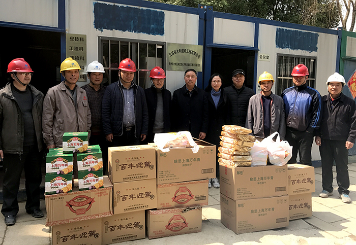 3月23日上午,公司領導許國安、姜啟生率隊赴常州洋橋活動堰工程項目部,看望慰問了正在搶工的施工一線工人。