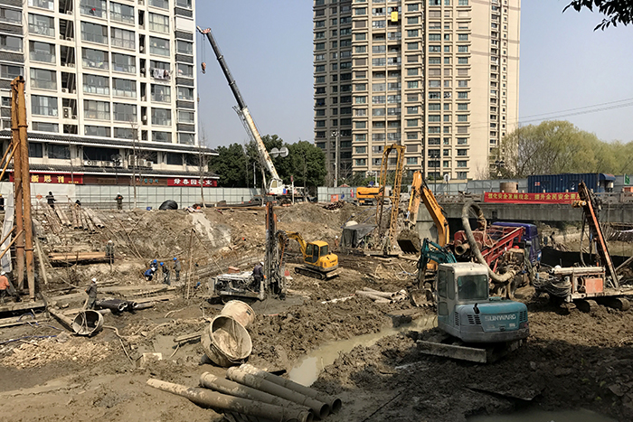 洋橋活動堰工程是常州市主城區“暢流活水”四座活動堰工程中的一座,建成以后能夠營造城周水勢、增加入城水量,實現城內科學配水,滿足常州市東北部城區先期活水需求。本工程工期緊,2018年1月28日開工,5月25日需具備水下驗收條件。由于工程位于市中心居民區旁,場地狹小,作業時間受限,施工難度大。目前正在進行灌注樁、高噴樁的施工,計劃4月1日起開始主體工程的建設。