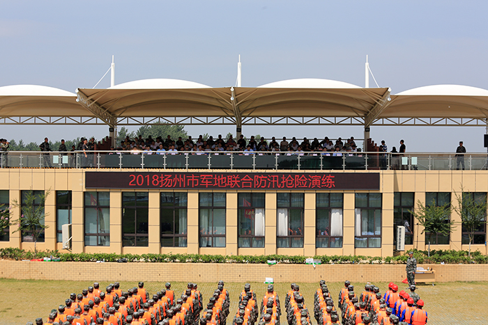 6月25日是揚州入梅的第一天。為做好今年的防汛工作,進一步檢驗軍地聯合搶險工作機制和搶險隊伍的實戰能力,25日上午,由揚州市防汛防旱指揮部、揚州軍分區聯合組織的模擬抗洪搶險行動在江蘇省防汛搶險訓練場展開。我公司作為中國人民解放軍江蘇省揚州軍分區特邀單位,組織防汛搶險突擊隊參加了演練。市委常委、揚州軍分區司令員酈斌、副市長丁一等市領導、各縣市區負責同志、市各級防汛部門負責同志觀摩演練。我公司董事長時愛祥現場指揮并出席觀摩演練大會。