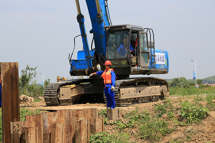 公司此次參加演練的科目是組織大型鋼板樁封堵決口課目演示。我公司是省級防汛抗旱物資委儲單位,儲備了一批鋼管、鋼板樁。參加演練首先檢驗的是我公司對委儲物資的調運協調能力。23日,在設備租賃分公司的支持下,30余噸鋼板樁和植樁機等大型機械,按照《防汛物資緊急調運預案》在規定時間內到達演練指定位置,并進行了預演施工。