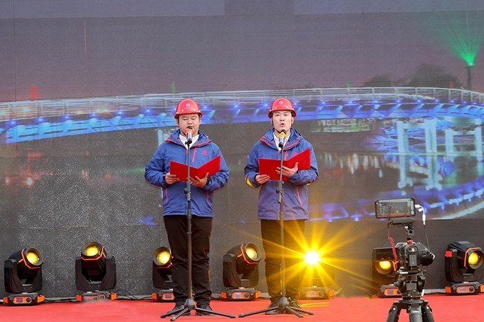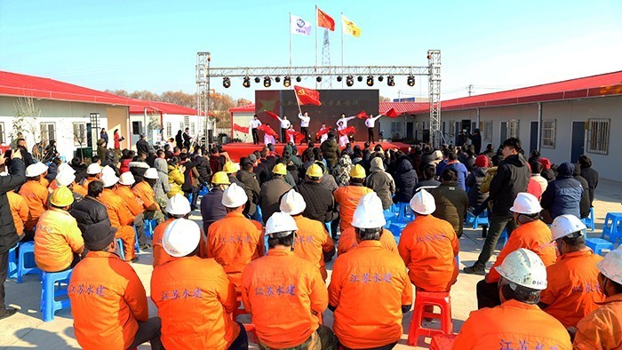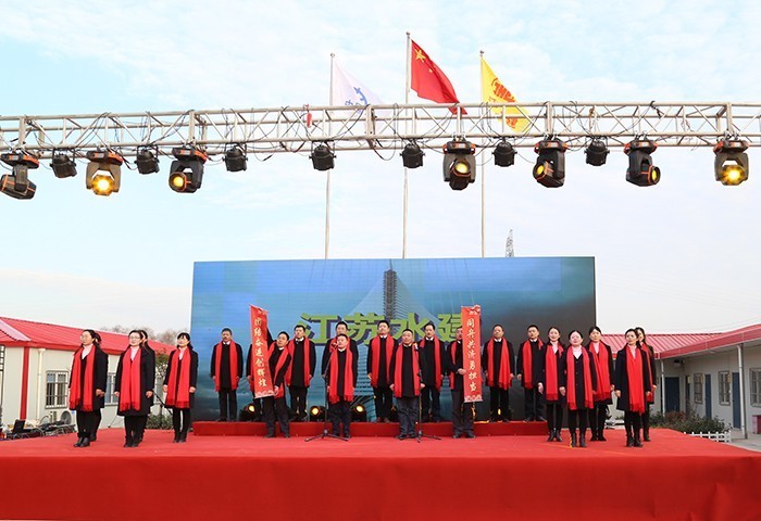 12月29日,由公司黨委主辦,公司工會、團委、新孟河界牌樞紐項目部承辦的職工迎新年聯歡會在江蘇省重點水利工程---新孟河界牌樞紐的施工現場隆重舉行,邀請了新孟河工程建管局、新孟河界牌樞紐工程建設處、公司所屬各單位、各部門的領導和職工以及項目部施工一線工人約200多人到場觀看演出,共同慶祝偉大祖國改革開放40周年。