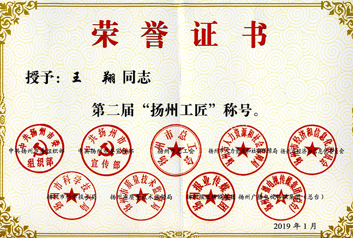 201811月份起,由市委組織部、宣傳部、市總工會、人社局、經信委、科技局、質監局、報業集團和廣電總臺9個部門,在全市組織開展了第二屆“揚州工匠”推薦評選活動。經過推薦申報、資格審核、專家評審、媒體展示、專家復審五個環節,從90多位參評者中評選出20位“揚州工匠”,代表了揚州高水平技能型人才,集中展現了他們品格高尚、技藝精湛、技能高超、勇于創新的形象。