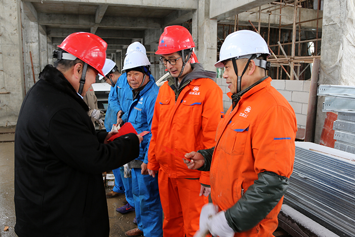 初四上午,公司董事長時愛祥帶隊來到工地現場,慰問堅守崗位的一線施工人員,給大家送來新年的祝福和關懷。
