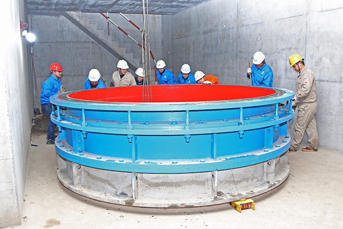 為確保工程能夠在2019年汛期投入運行,及時發揮防洪排澇效益,在5月底揚州汛期來臨之前必須完成設備安裝調試,具備運行條件。機電安裝分公司的安裝技術團隊圍繞“如期實現開機排澇”這一重要節點目標,全力以赴組織工程施工。主要涉及6臺總裝機容量9600KW立式軸流泵、輔機系統、電氣設備的安裝,正常需要7個月的安裝工期,經項目部優化,力爭壓縮到5個月內完成,以確保5月中下旬實現開機運行條件。