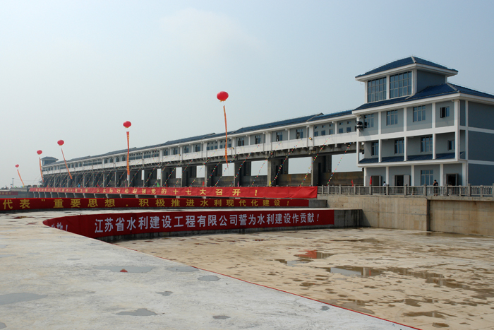 海口控制樞紐工程是2005年度江蘇省水利建設最大的單項工程,也是江蘇省政府2006年重點工程之一。我公司在工程施工中采取了多項創新技術:閘室和下游翼墻采用的沉井數量達15只,單井面積大于