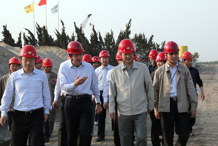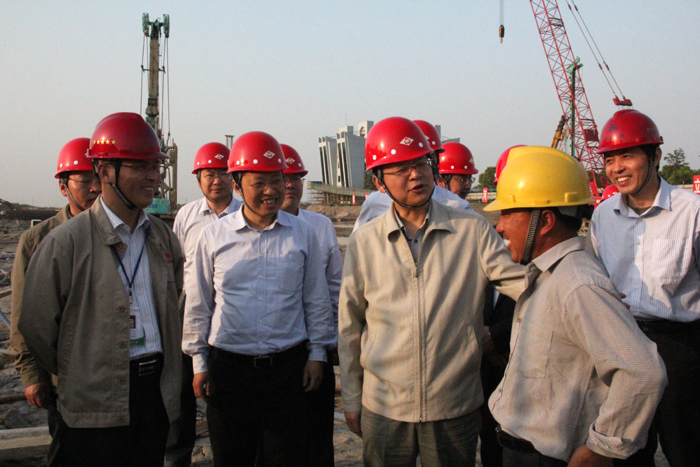 李亞平來到正在施工的引江河二期工程船閘施工現場,實地察看工程建設情況,與正在施工的工人們親切交談,詳細的詢問了他們的工作、生活情況。李亞平勉勵大家要鼓足干勁,爭取又快又好地完成引江河二期工程建設任務。