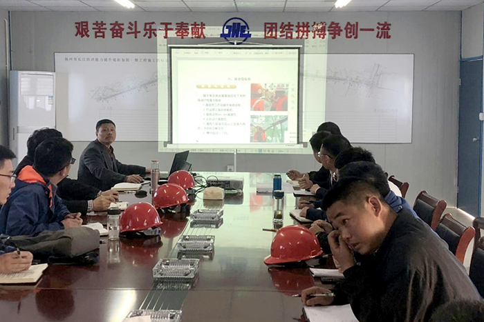 4月16日上午,基礎工程分公司在揚州市長江防洪能力提升加固一期工程(江都區)施工Ⅳ~Ⅴ標項目部舉辦了安全生產現場教學培訓。分公司各級管理人員、專(兼)職安全管理人員近二十人參加了培訓。培訓邀請了公司安全管理專家鄧新杰分別進行了現場教學與理論培訓。