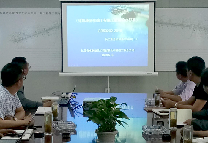 5月14日下午2時,基礎(chǔ)工程分公司在揚(yáng)州市長江防洪能力提升加固一期工程(江都區(qū))施工Ⅳ~Ⅴ標(biāo)項目部舉辦了《建筑地基基礎(chǔ)工程施工質(zhì)量驗(yàn)收標(biāo)準(zhǔn)》(GB50202-2018)培訓(xùn),分公司領(lǐng)導(dǎo)、部門負(fù)責(zé)人及工程技術(shù)人員20多人參加了培訓(xùn)。