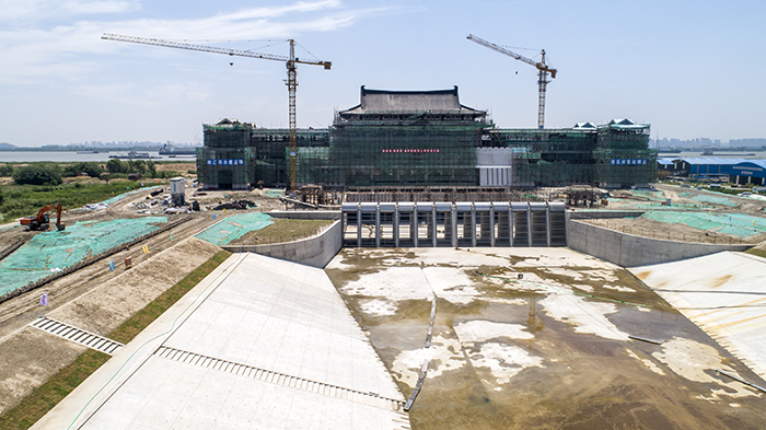 瓜洲泵站工程于201781日正式開工建設。到20191月底,完成泵站主體土建施工,主廠房封頂;4月底完成6臺套泵站機組安裝。到5月下旬,已完成水下部分工作量,正在進行主機組安裝調試工作,同步推進泵房古建及裝飾工程掃尾。開工建設以來,工程累計完成混凝土4.5萬方,鋼筋制作安裝3000余噸,土方開挖、回填52萬方,累計完成投資約1.2億元。