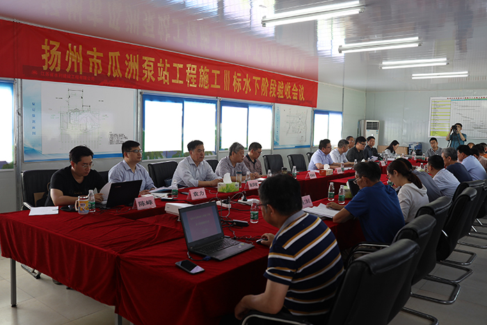 524日,由我公司一分公司承建的揚州市瓜洲泵站工程施工標順利通過水下階段驗收。市水利局、發改委、財政局相關部門負責同志、特邀專家以及參建各方代表出席了會議。我公司副總經理翟高明參加了驗收會議。