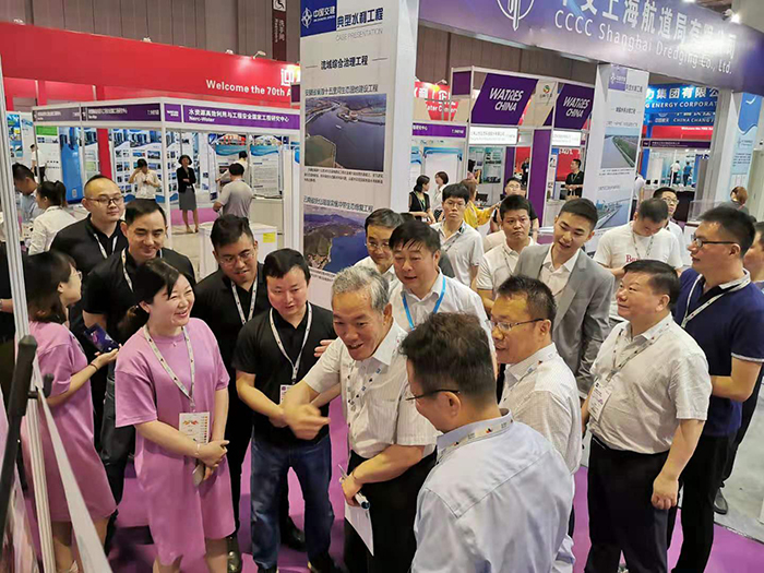 6月3日,時愛祥董事長、顧明如總經理率隊參觀了2019上海國際水利展暨水利企業發展成就展。在水機公司展位前,時愛祥向中國水利企業協會會長張志彤、副會長駱濤等介紹了公司發展情況和水機公司的環保清淤產品,多位專家、企業家對水機公司的產品表示了濃厚的興趣,參展取得了良好的效果。