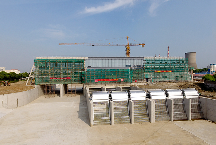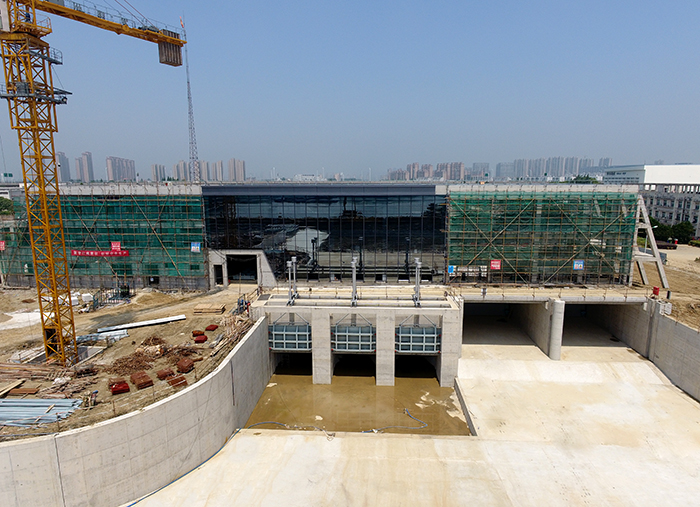 工程于2018年6月10日開工建設,到2019年5月底完成泵站、節制閘主體及上下游聯結段土建施工,完成泵站6扇工作閘門、6套液壓啟閉機、1扇檢修門、6臺套清污機、1臺套皮帶機制安,完成3臺套貫流泵安裝,完成節制閘2扇工作閘門及2套卷揚式啟閉機制安,完成主副廠房及調度中心土建施工,具備水下階段驗收條件,比原合同工期有所提前;目前正進行主副廠房、調度中心裝飾施工及輔機設備安裝調試工作,擬于2019年9月初具備完工驗收條件。