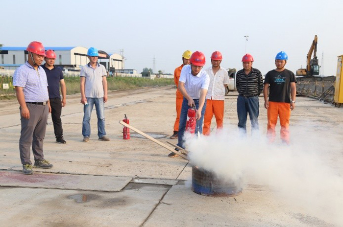 演練開始前,專職安全員通過PPT及視頻就消防逃離、自救、滅火等作了消防安全知識教育培訓。通過消防滅火的實戰演練,大家在活動實踐中掌握了消防器材的操作要領,提高了防火意識和自救能力,增強了消防隱患排除、消防事故救援的本領,為重點工程建設提供了安全保障。