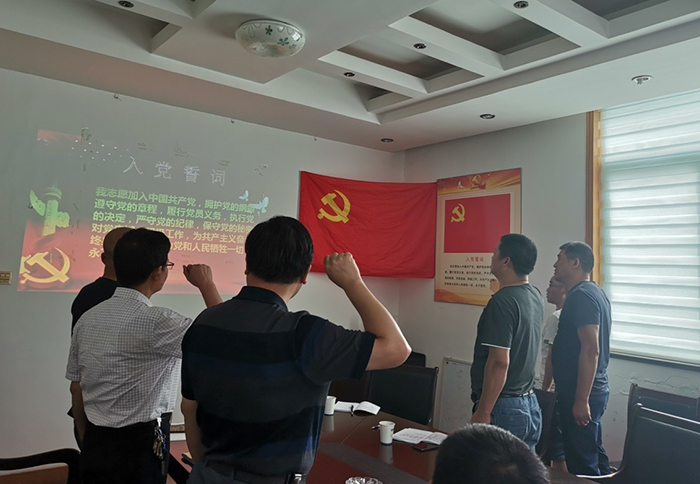 黨總支副書記萬春耕帶領新黨員和與會全體黨員重溫了入黨誓詞,通過重憶入黨經歷、分享成長經歷、重問入黨初心,黨員同志進一步堅定了自己的初心和使命。