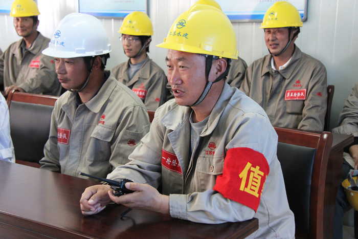 演練前,項目經(jīng)理顧明如檢查了防汛領(lǐng)導(dǎo)小組成員及演練人員到位情況、應(yīng)急救援物資存放及設(shè)備完好情況;項目部技術(shù)負(fù)責(zé)人對防汛預(yù)案進行了解說,項目部副經(jīng)理王天榮就應(yīng)急預(yù)案的啟動條件作了說明。14時,以“長江水位接近下閘首圍堰頂高層”為假想的演練活動拉開序幕。項目部接到泰州引江河第二期工程建設(shè)局防汛領(lǐng)導(dǎo)小組訊情通知后,防汛小組組長、應(yīng)急預(yù)案總指揮、項目經(jīng)理顧明如第一時間啟動防汛應(yīng)急救援預(yù)案,發(fā)布搶險命令,組織開展搶險。副經(jīng)理王天榮立即開展現(xiàn)場組織,緊張有序地落實各項搶險救援措施。5個防汛搶險隊分工明確,各部門配合默契,搶險物資齊備到位,施救組織有效得力。58分鐘后,應(yīng)急防汛搶險演練完成了演練程序,取得了良好的效果。