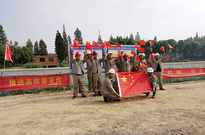 太滆運(yùn)河施工I標(biāo)擋墻施工隊(duì)?wèi)c祝建國(guó)70周年