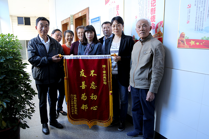 公司本部大院在地方社區已有近二十年,近年來,大院北面建起了“冶春別院”居民樓,緊挨著公司院內原先生長的一排水杉樹。后來入住的居民感到水杉枝葉對其光照帶來了影響,多次要求將水杉樹全部處理掉。公司綜合管理部考慮到既要保存樹木,為揚城綠化城市這塊金字招牌作貢獻,又要處理好鄰里關系,盡可能地做到鄰里和諧,彼此相互理解支持。經多方溝通,公司組織專業人員對水杉樹枝進行了修剪,較好地解決了居民陽光遮擋的困擾。冶春別院居民對此十分滿意,夸贊公司友善為鄰、為民辦實事,為了表達他們感謝之情,特為公司送上一面錦旗:“不忘初心,友善為鄰”。
