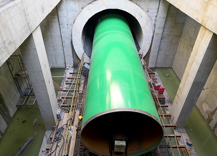 施工過程中遇到了諸多難以想像的困難——工程要在受限的隧道空間進行重達31噸的鋼管運輸安裝,常規施工設備根本無法施展;項目部人員缺少隧道施工經驗,缺少專業施工設備,沒有現成的施工方法借鑒。在公司強有力的支持下,項目部技術人員廣開思路,開展技術攻關。他們對大口徑鋼管運輸、對口等設備進行創新設計,并不斷進行優化改進,確保了鋼管安裝的順利推進。