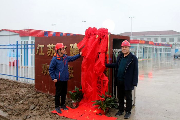 升旗儀式后,時愛祥和基礎(chǔ)工程分公司經(jīng)理李存筆為項目部及黨支部揭牌,時愛祥鼓勵全體人員再接再厲,嚴把工程質(zhì)量關(guān),嚴抓安全管理,推進黨建與工程建設(shè)雙成效、雙豐收。