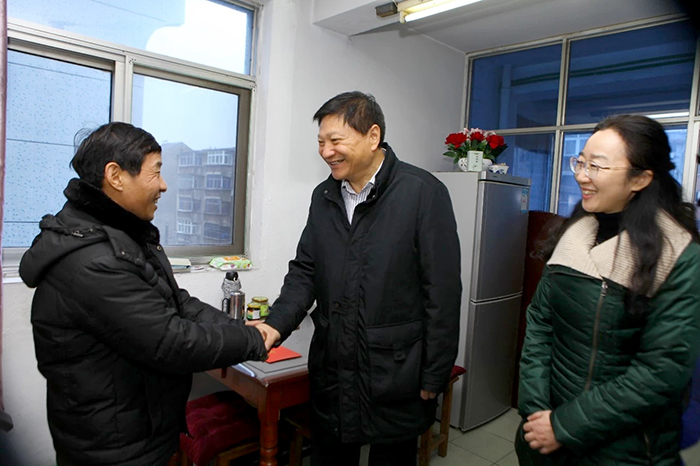 1月16日下午,市人大常委副主任、市總工會主席楊正福、市總工會副主席洪慧娟一行來到我公司特困職工李裕民家中走訪慰問,公司副總經理、黨委副書記、工會主席姜啟生等陪同慰問。