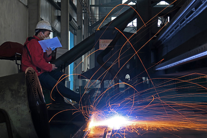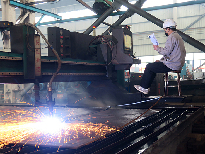 鐘衛華介紹,目前每天上班的員工有200多人,跟高峰期相比,產能大約在八成左右。當前最大的問題是上下游鏈條不暢,采購的材料、零配件進不來,制作好的鋼結構出不去,只好堆積在廠區內。不過他表示,有信心做到疫情防控和生產制造兩不誤,克服困難開足馬力穩產,確保完成汛前任務,待到春暖花開時,正是為水利工程安全度汛立功日。