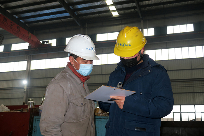 江蘇水機公司作為江蘇省水利工程鋼閘門、啟閉機制造骨干企業,往年正月初四開工已成為企業慣例。開展防控新冠肺炎疫情以來,如何穩產復工,確保重點水利工程鋼結構生產任務不受疫情影響,成為擺在水機公司領導面前的一道難題。他們知道,當前必須將疫情防控作為壓倒一切的重要政治任務,只有把各項防控措施落實到位才能有序組織復工。大年初七,水機公司就開始周密部署疫情防控工作,多措并舉,抓好疫情防控和復工穩產兩手工作。