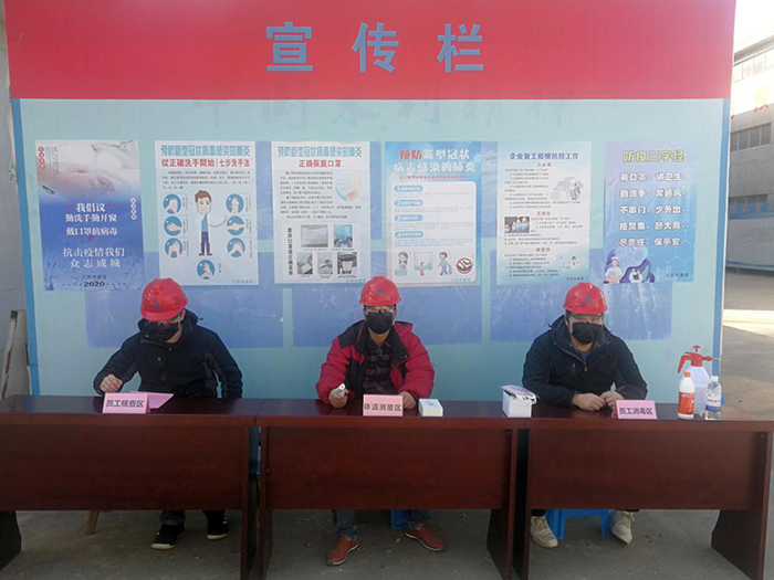 項目管理人員到崗后,及時申報復(fù)工方案,開展防疫檢查,與政府部門對接,有序組織非重點地區(qū)工人進(jìn)場。工地實行全封閉管理,員工檢測體溫后登記進(jìn)場,設(shè)置隔離間,每日對項目部辦公、生活區(qū)全面消毒,確保防疫措施一一落實到位。