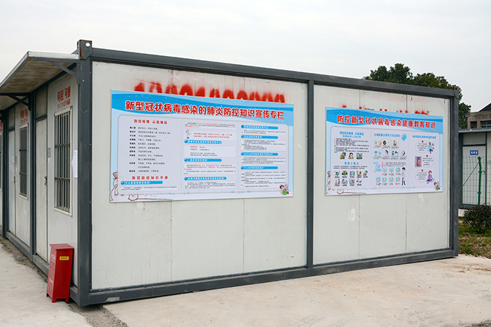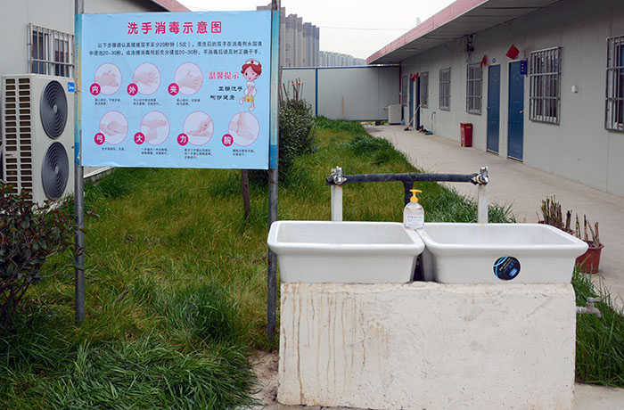 日常管理到位。項(xiàng)目部在生活區(qū)和施工現(xiàn)場(chǎng)大門設(shè)置測(cè)溫點(diǎn),安排管理人員值班,所有人員每天兩次到測(cè)溫點(diǎn)進(jìn)行測(cè)溫,體溫正常方可進(jìn)入施工現(xiàn)場(chǎng)工作。項(xiàng)目部安排保潔人員每天至少兩次對(duì)辦公區(qū)、生活區(qū)進(jìn)行消毒并填寫(xiě)消毒記錄表,對(duì)食堂、浴室、衛(wèi)生間等人員密集場(chǎng)所要求每天消毒次數(shù)不少于4次。項(xiàng)目部還實(shí)行分批就餐,有效避免就餐人員集中,減少交叉感染的風(fēng)險(xiǎn)。