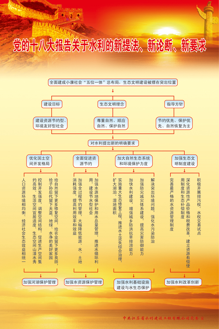 針對江蘇省水利改革發(fā)展和現(xiàn)代化建設(shè)的偉大實踐,宣傳牌圍繞2011年中央和省委一號文件的戰(zhàn)略部署,以奮力開啟江蘇水利現(xiàn)代化新征程為統(tǒng)攬,對水利現(xiàn)代化建設(shè)的指導(dǎo)思想、發(fā)展目標(biāo)、總體布局與主要任務(wù)、實施方案、保障措施等提出了具體要求,構(gòu)建出清晰明朗的發(fā)展目標(biāo)和實施規(guī)劃。