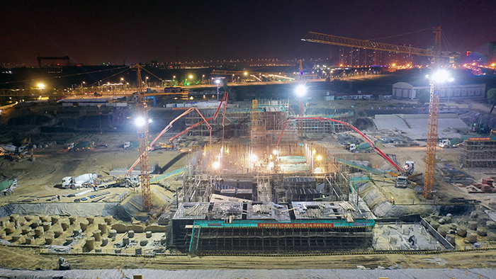4月9日夜晚9時(shí)許,定波水利樞紐工程工地上燈火通明,挖機(jī)有序作業(yè),工程車(chē)出入繁忙,塔吊不停地調(diào)運(yùn)施工材料,工人們穿梭于鋼筋網(wǎng)、腳手架中,呈現(xiàn)出搶工大干熱潮,這樣的場(chǎng)景幾乎每天都在重復(fù)著。